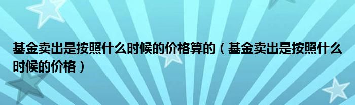 基金卖出是按照什么时候的价格算的(基金卖出是按照什么时候的价格),急!求解答,求不沉贴!