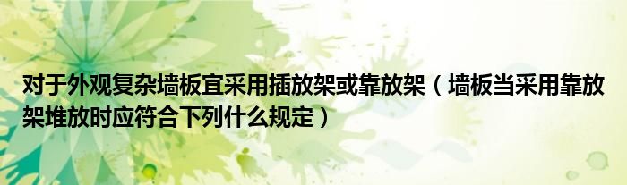 您好,今天帅帅来为大家解答以上的问题。对于外观复杂墙板宜采用插放架或靠放架,墙板当采用靠放架堆放时应符合下列什么规定相信很多小伙伴还不知道,现在让我们一起来看看吧!