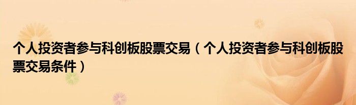 您好,今天帅帅来为大家解答以上的问题。个人投资者参与科创板股票交易,个人投资者参与科创板股票交易条件相信很多小伙伴还不知道,现在让我们一起来看看吧!