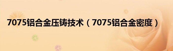 您好,今天帅帅来为大家解答以上的问题。7075铝合金压铸技术,7075铝合金密度相信很多小伙伴还不知道,现在让我们一起来看看吧!