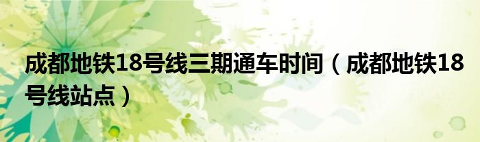 您好,今天帅帅来为大家解答以上的问题。成都地铁18号线三期通车时间,成都地铁18号线站点相信很多小伙伴还不知道,现在让我们一起来看看吧!