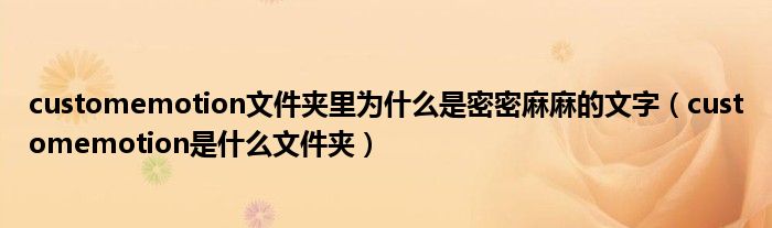 您好,今天帅帅来为大家解答以上的问题。customemotion文件夹里为什么是密密麻麻的文字,customemotion是什么文件夹相信很多小伙伴还不知道,现在让我们一起来看看吧!