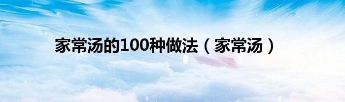 您好,今天帅帅来为大家解答以上的问题。家常汤的100种做法,家常汤相信很多小伙伴还不知道,现在让我们一起来看看吧!