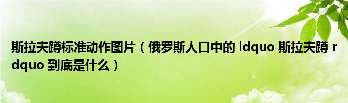 您好,今天帅帅来为大家解答以上的问题。斯拉夫蹲标准动作图片,俄罗斯人口中的 ldquo 斯拉夫蹲 rdquo 到底是什么相信很多小伙伴还不知道,现在让我们一起来看看吧!