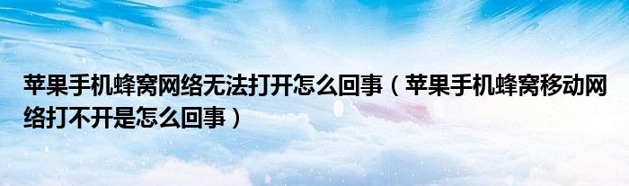 1、苹果手机蜂窝移动网络打不开的原因有几个:1.系统网络设置出错。