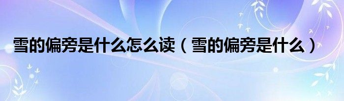 您好,今天帅帅来为大家解答以上的问题。雪的偏旁是什么怎么读,雪的偏旁是什么相信很多小伙伴还不知道,现在让我们一起来看看吧!