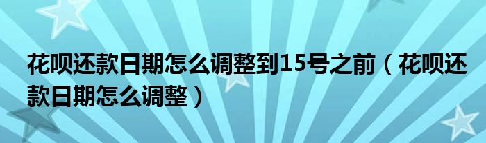 您好,今天帅帅来为大家解答以上的问题。花呗还款日期怎么调整到15号之前,花呗还款日期怎么调整相信很多小伙伴还不知道,现在让我们一起来看看吧!