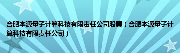 合肥本源量子计算科技有限责任公司股票(合肥本源量子计算科技有限责任公司),求解答求解答,第三遍了!