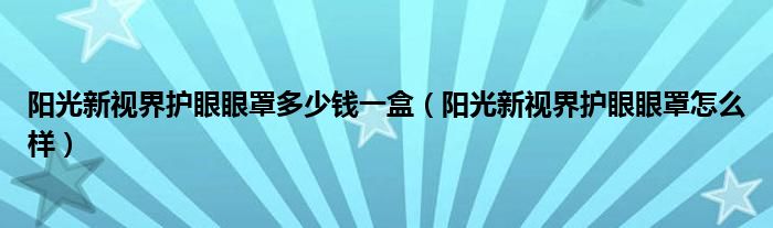 您好,今天帅帅来为大家解答以上的问题。阳光新视界护眼眼罩多少钱一盒,阳光新视界护眼眼罩怎么样相信很多小伙伴还不知道,现在让我们一起来看看吧!