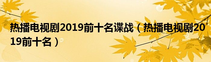 您好,今天帅帅来为大家解答以上的问题。热播电视剧2019前十名谍战,热播电视剧2019前十名相信很多小伙伴还不知道,现在让我们一起来看看吧!
