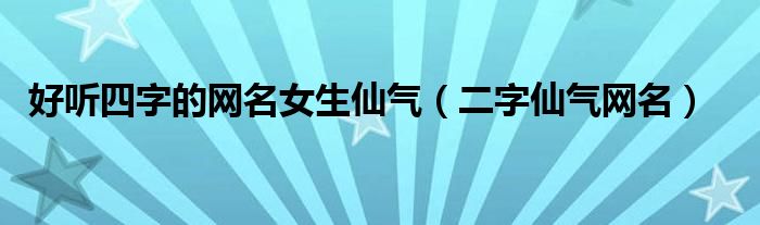 您好,今天帅帅来为大家解答以上的问题。好听四字的网名女生仙气,二字仙气网名相信很多小伙伴还不知道,现在让我们一起来看看吧!