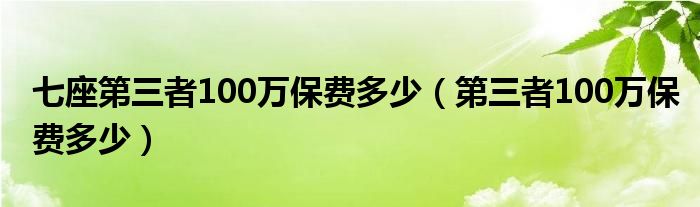 七座第三者100万保费多少(第三者100万保费多少),有没有人能救救孩子?求解答!
