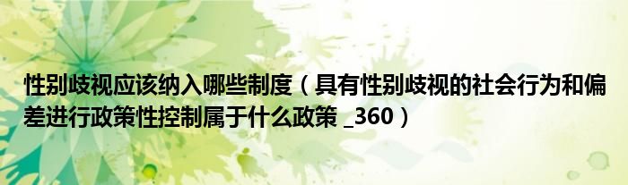 您好,今天帅帅来为大家解答以上的问题。性别歧视应该纳入哪些制度,具有性别歧视的社会行为和偏差进行政策性控制属于什么政策 _360相信很多小伙伴还不知道,现在让我们一起来看看吧!