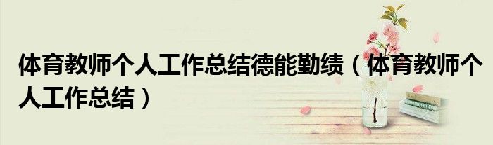 您好,今天帅帅来为大家解答以上的问题。体育教师个人工作总结德能勤绩,体育教师个人工作总结相信很多小伙伴还不知道,现在让我们一起来看看吧!