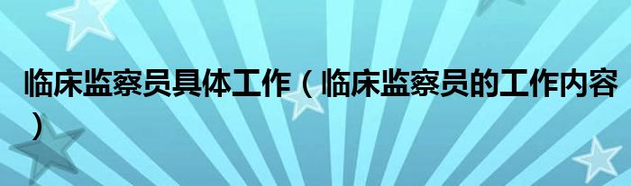 临床监察员具体工作(临床监察员的工作内容),有没有大神路过?求指点迷津!