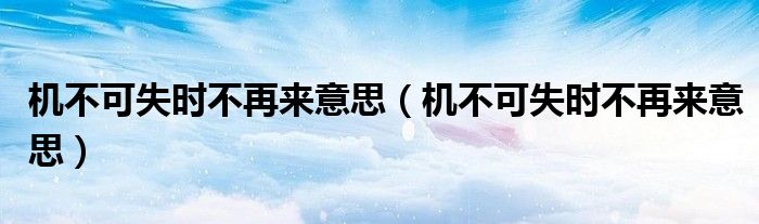 您好,今天帅帅来为大家解答以上的问题。机不可失时不再来意思,机不可失时不再来意思相信很多小伙伴还不知道,现在让我们一起来看看吧!