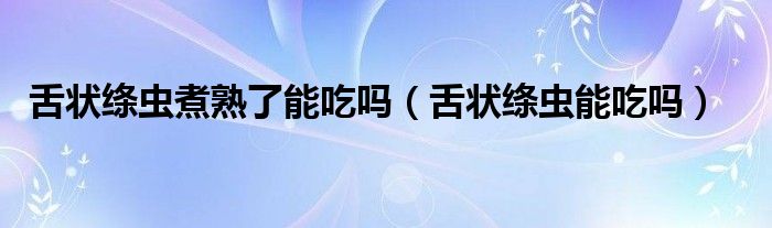 您好,今天帅帅来为大家解答以上的问题。舌状绦虫煮熟了能吃吗,舌状绦虫能吃吗相信很多小伙伴还不知道,现在让我们一起来看看吧!
