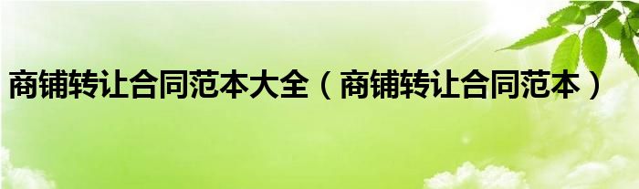 您好,今天帅帅来为大家解答以上的问题。商铺转让合同范本大全,商铺转让合同范本相信很多小伙伴还不知道,现在让我们一起来看看吧!
