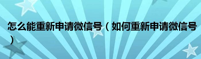 怎么能重新申请微信号(如何重新申请微信号)求高手给解答