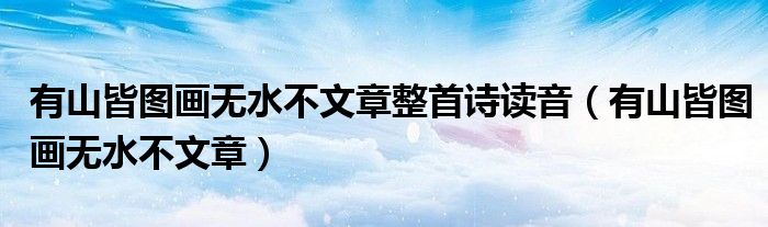 您好,今天帅帅来为大家解答以上的问题。有山皆图画无水不文章整首诗读音,有山皆图画无水不文章相信很多小伙伴还不知道,现在让我们一起来看看吧!