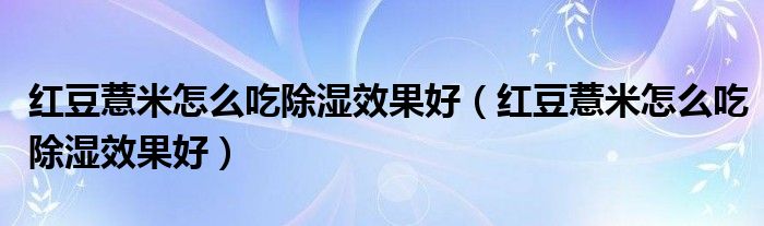 您好,今天帅帅来为大家解答以上的问题。红豆薏米怎么吃除湿效果好,红豆薏米怎么吃除湿效果好相信很多小伙伴还不知道,现在让我们一起来看看吧!
