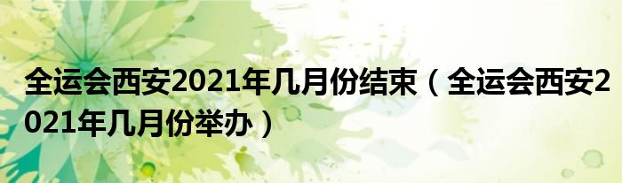 您好,今天帅帅来为大家解答以上的问题。全运会西安2021年几月份结束,全运会西安2021年几月份举办相信很多小伙伴还不知道,现在让我们一起来看看吧!