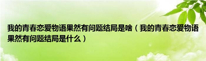 您好,今天帅帅来为大家解答以上的问题。我的青春恋爱物语果然有问题结局是啥,我的青春恋爱物语果然有问题结局是什么相信很多小伙伴还不知道,现在让我们一起来看看吧!