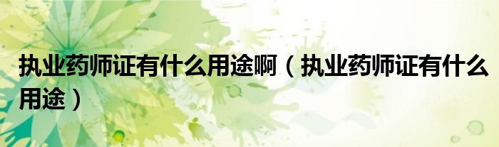 您好,今天帅帅来为大家解答以上的问题。执业药师证有什么用途啊,执业药师证有什么用途相信很多小伙伴还不知道,现在让我们一起来看看吧!