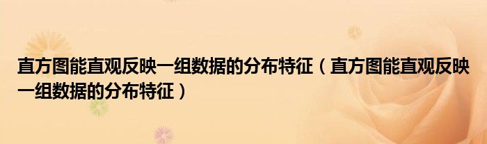 您好,今天帅帅来为大家解答以上的问题。直方图能直观反映一组数据的分布特征,直方图能直观反映一组数据的分布特征相信很多小伙伴还不知道,现在让我们一起来看看吧!