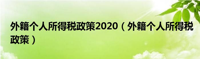 您好,今天帅帅来为大家解答以上的问题。外籍个人所得税政策2020,外籍个人所得税政策相信很多小伙伴还不知道,现在让我们一起来看看吧!