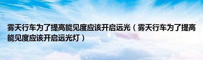 雾天行车为了提高能见度应该开启远光(雾天行车为了提高能见度应该开启远光灯),有没有大佬愿意点拨一下?求帮忙!
