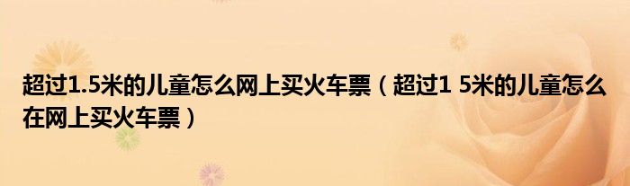 您好,今天帅帅来为大家解答以上的问题。超过1.5米的儿童怎么网上买火车票,超过1 5米的儿童怎么在网上买火车票相信很多小伙伴还不知道,现在让我们一起来看看吧!