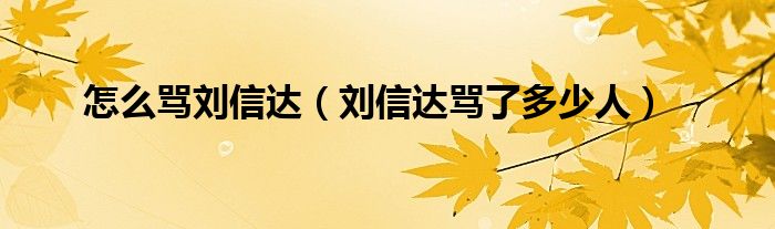 您好,今天帅帅来为大家解答以上的问题。怎么骂刘信达,刘信达骂了多少人相信很多小伙伴还不知道,现在让我们一起来看看吧!