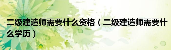 您好,今天帅帅来为大家解答以上的问题。二级建造师需要什么资格,二级建造师需要什么学历相信很多小伙伴还不知道,现在让我们一起来看看吧!
