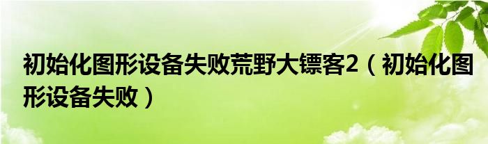 您好,今天帅帅来为大家解答以上的问题。初始化图形设备失败荒野大镖客2,初始化图形设备失败相信很多小伙伴还不知道,现在让我们一起来看看吧!