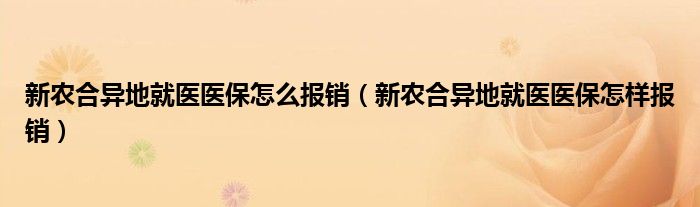 您好,今天帅帅来为大家解答以上的问题。新农合异地就医医保怎么报销,新农合异地就医医保怎样报销相信很多小伙伴还不知道,现在让我们一起来看看吧!