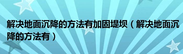 您好,今天帅帅来为大家解答以上的问题。解决地面沉降的方法有加固堤坝,解决地面沉降的方法有相信很多小伙伴还不知道,现在让我们一起来看看吧!