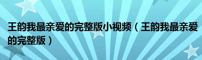 您好,今天帅帅来为大家解答以上的问题。王韵我最亲爱的完整版小视频,王韵我最亲爱的完整版相信很多小伙伴还不知道,现在让我们一起来看看吧!