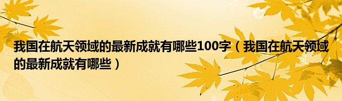 您好,今天帅帅来为大家解答以上的问题。我国在航天领域的最新成就有哪些100字,我国在航天领域的最新成就有哪些相信很多小伙伴还不知道,现在让我们一起来看看吧!