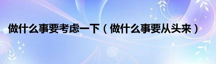 您好,今天帅帅来为大家解答以上的问题。做什么事要考虑一下,做什么事要从头来相信很多小伙伴还不知道,现在让我们一起来看看吧!