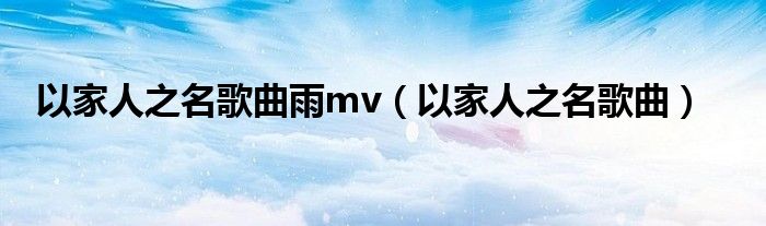 您好,今天帅帅来为大家解答以上的问题。以家人之名歌曲雨mv,以家人之名歌曲相信很多小伙伴还不知道,现在让我们一起来看看吧!