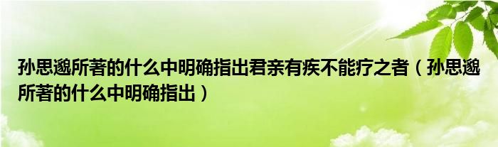 您好,今天帅帅来为大家解答以上的问题。孙思邈所著的什么中明确指出君亲有疾不能疗之者,孙思邈所著的什么中明确指出相信很多小伙伴还不知道,现在让我们一起来看看吧!