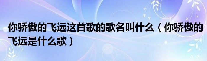 您好,今天帅帅来为大家解答以上的问题。你骄傲的飞远这首歌的歌名叫什么,你骄傲的飞远是什么歌相信很多小伙伴还不知道,现在让我们一起来看看吧!