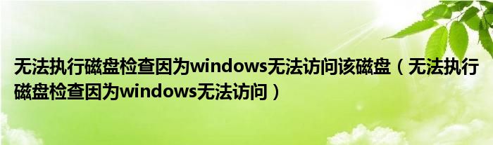您好,今天帅帅来为大家解答以上的问题。无法执行磁盘检查因为windows无法访问该磁盘,无法执行磁盘检查因为windows无法访问相信很多小伙伴还不知道,现在让我们一起来看看吧!