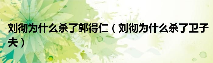 您好,今天帅帅来为大家解答以上的问题。刘彻为什么杀了郭得仁,刘彻为什么杀了卫子夫相信很多小伙伴还不知道,现在让我们一起来看看吧!