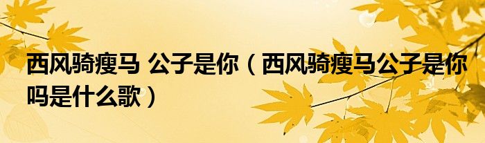 您好,今天帅帅来为大家解答以上的问题。西风骑瘦马 公子是你,西风骑瘦马公子是你吗是什么歌相信很多小伙伴还不知道,现在让我们一起来看看吧!