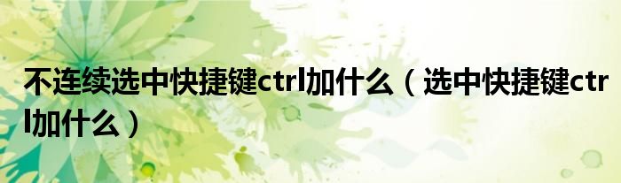 不连续选中快捷键ctrl加什么(选中快捷键ctrl加什么),急!这个问题想破头了,求解答!