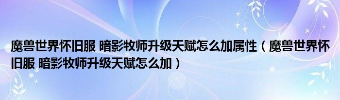 您好,今天帅帅来为大家解答以上的问题。魔兽世界怀旧服 暗影牧师升级天赋怎么加属性,魔兽世界怀旧服 暗影牧师升级天赋怎么加相信很多小伙伴还不知道,现在让我们一起来看看吧!