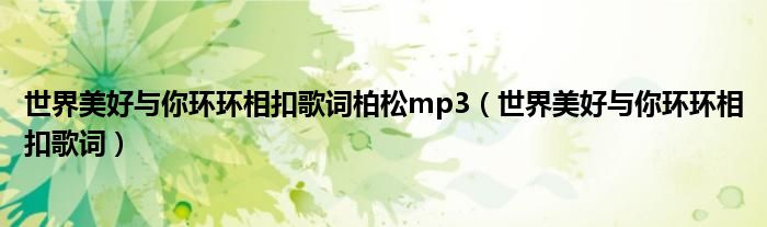 您好,今天帅帅来为大家解答以上的问题。世界美好与你环环相扣歌词柏松mp3,世界美好与你环环相扣歌词相信很多小伙伴还不知道,现在让我们一起来看看吧!