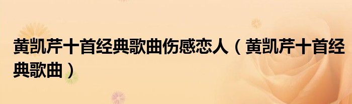 您好,今天帅帅来为大家解答以上的问题。黄凯芹十首经典歌曲伤感恋人,黄凯芹十首经典歌曲相信很多小伙伴还不知道,现在让我们一起来看看吧!
